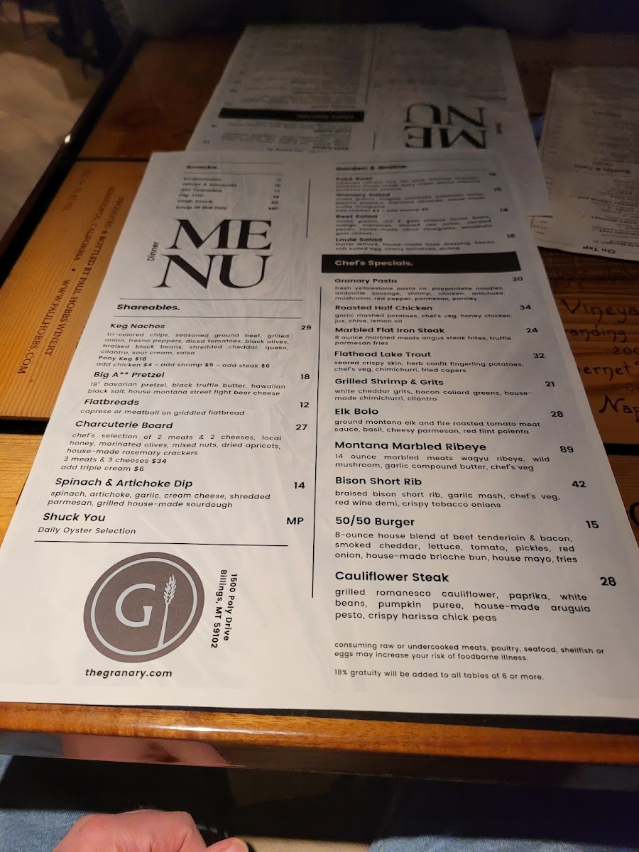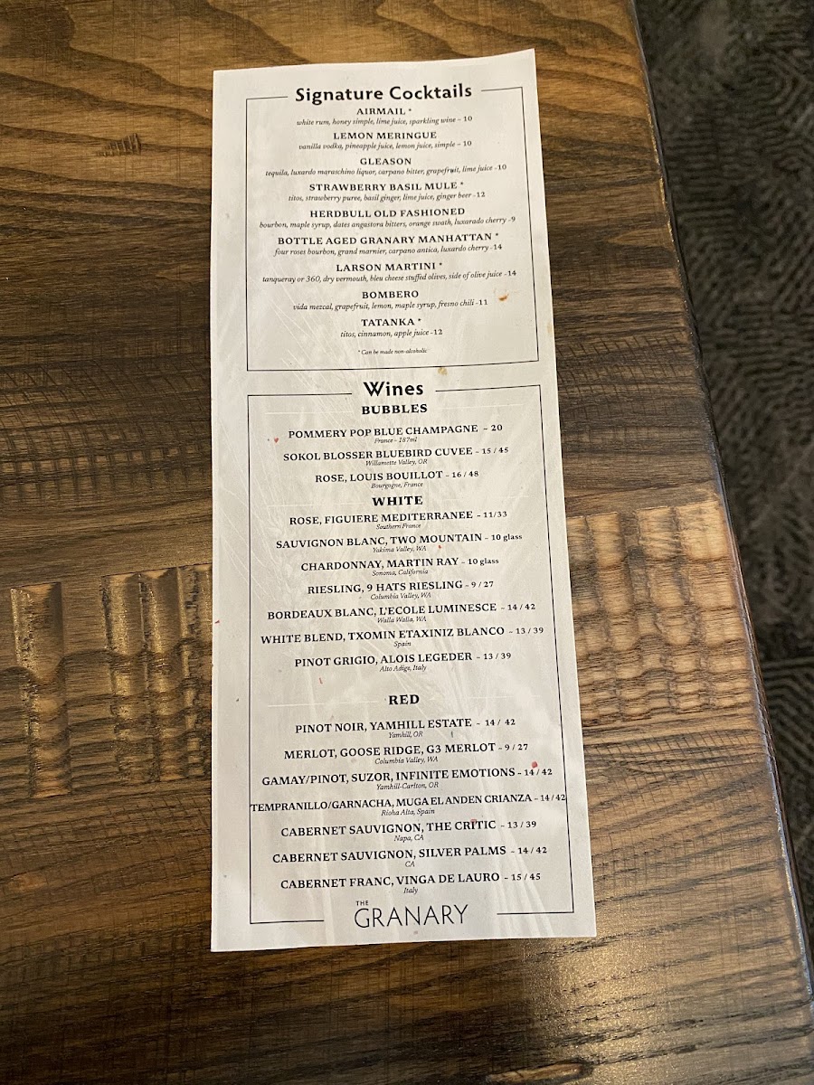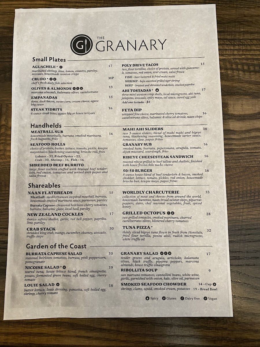 The Granary Menu