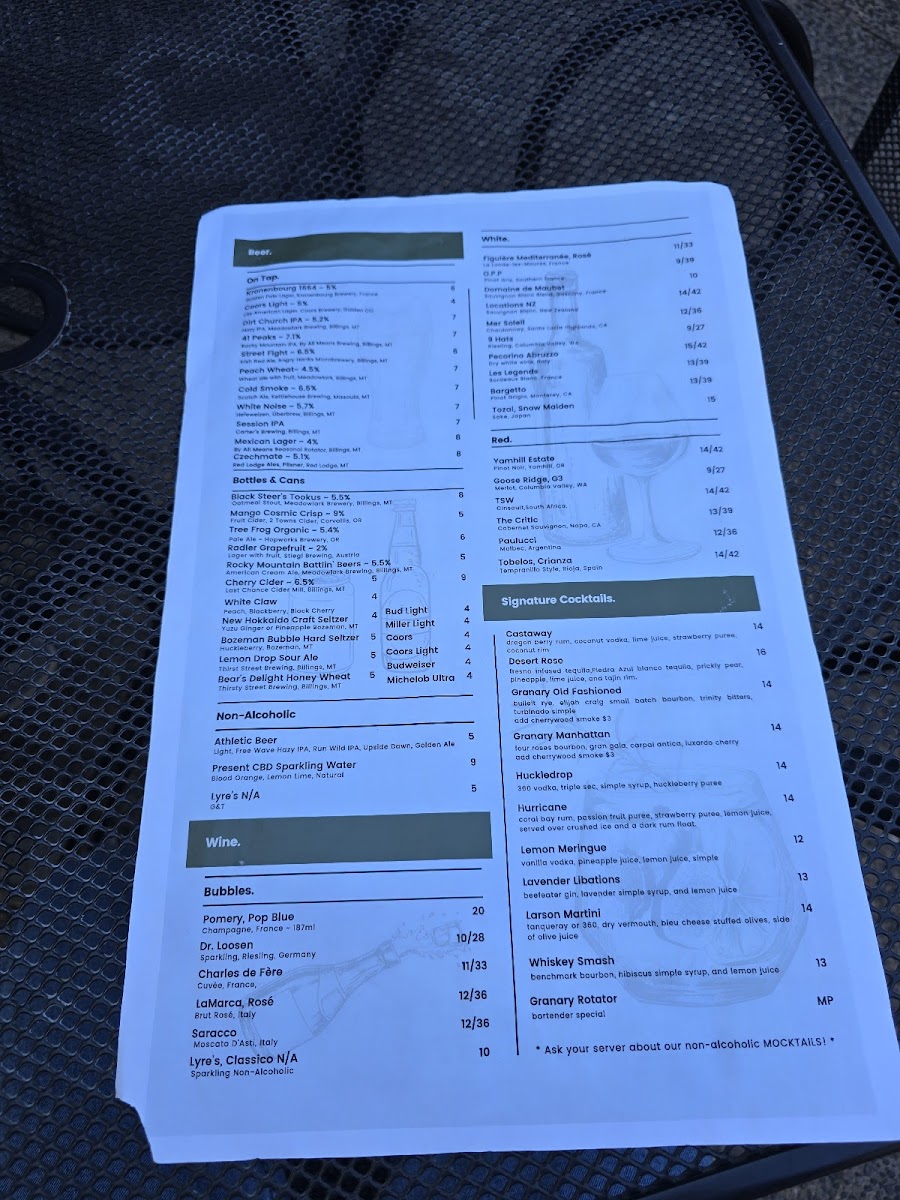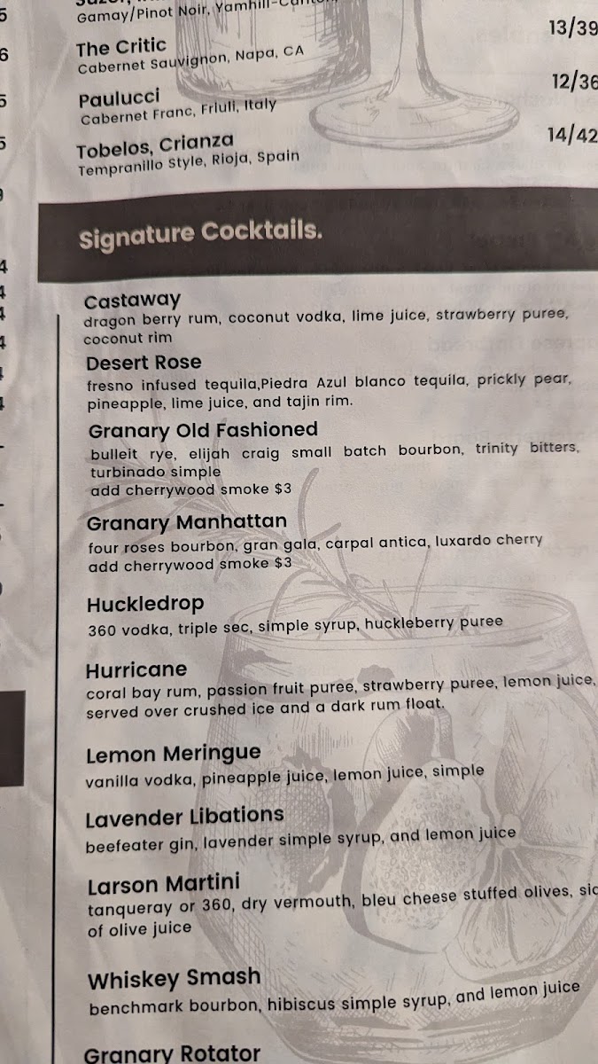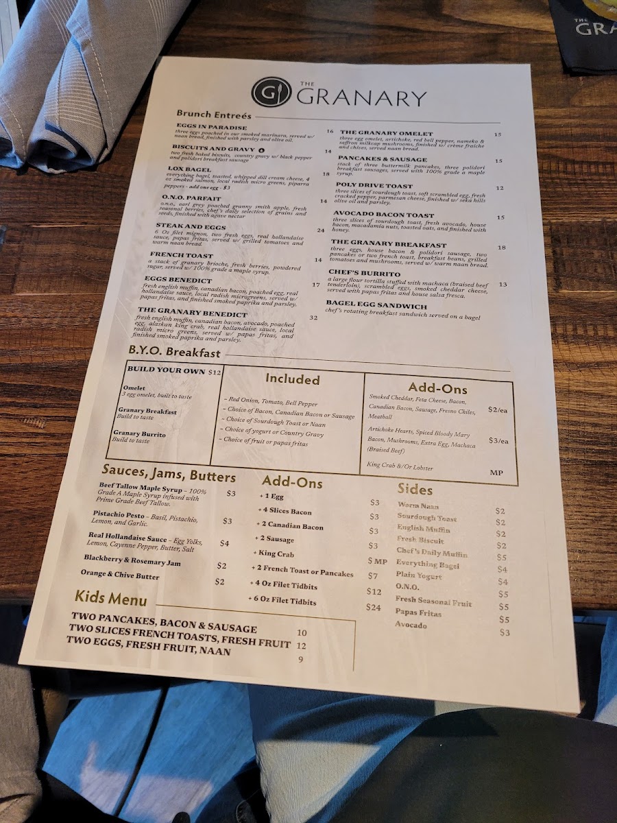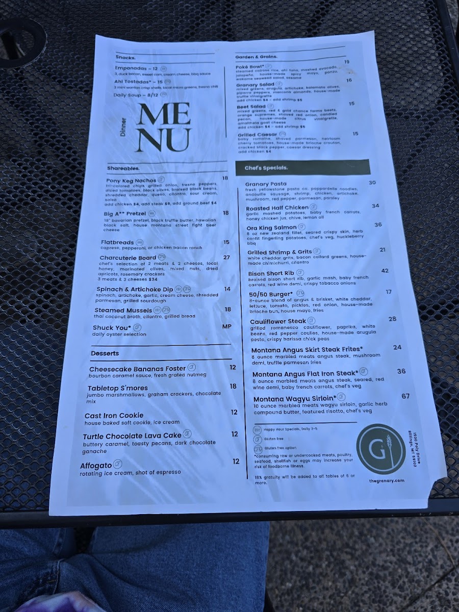 The Granary Menu